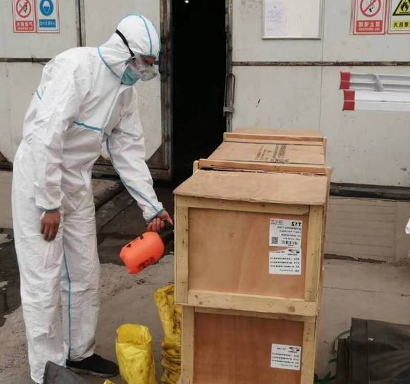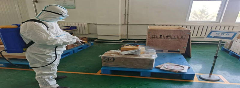 盛鲁能化分部员工对到货物资进行消杀。在确保疫情防控工作同时,全力以赴对盛鲁电厂2#机组B修工作所需的材料、配件进行现场验收工作,杜绝不合格物资进入现场,切实加强物资到货的质量管理,确保疫情防控和安全保供“两手抓”“两不误”。