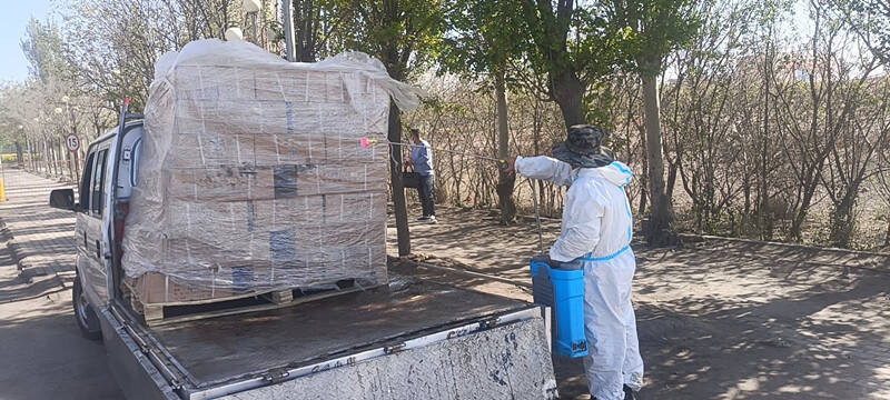 长城三矿驻矿分部员工针对到货物资,进行消杀及验收。他们在节日期间默默地坚守在岗位上,舍弃假日休息,放弃与家人的团聚,用辛勤和汗水服务于矿井,奋斗在物供一线。因为疫情原因,部分物资到矿后,需要分部员工到矿外消杀和验收。